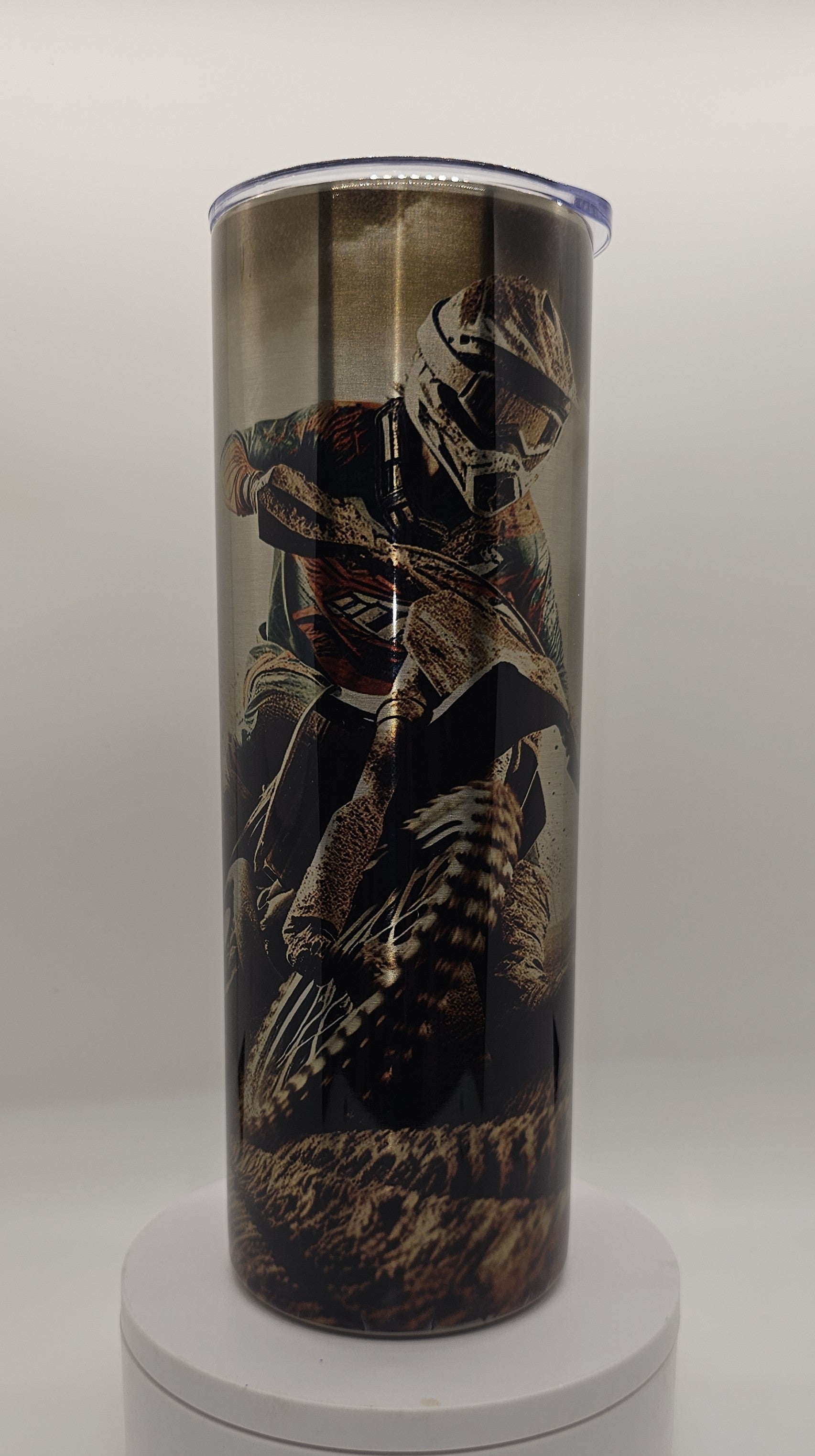 Perfect for the rider who lives for adventure, this 20oz stainless steel insulated tumbler keeps your favorite beverages at the ideal temperature whether you're heading to the track or the trails. The double-wall construction provides excellent insulation, while the sleek stainless-steel finish complements any gear collection. Designed to fit most cup holders, it's the ideal companion for long days in the dirt. Because a little dirt never hurt anyone.