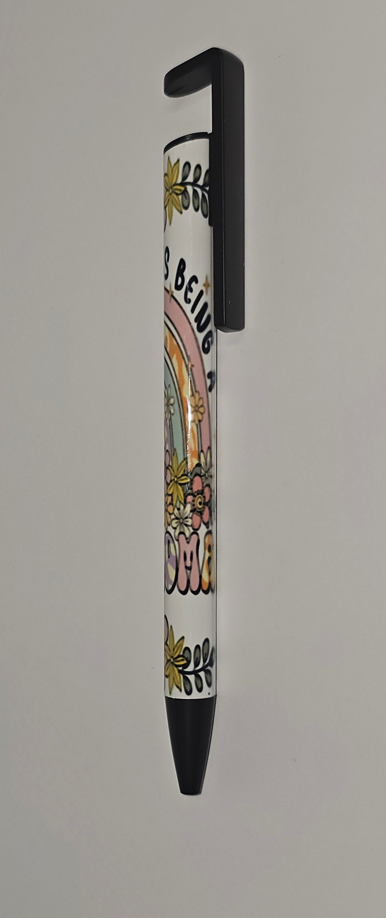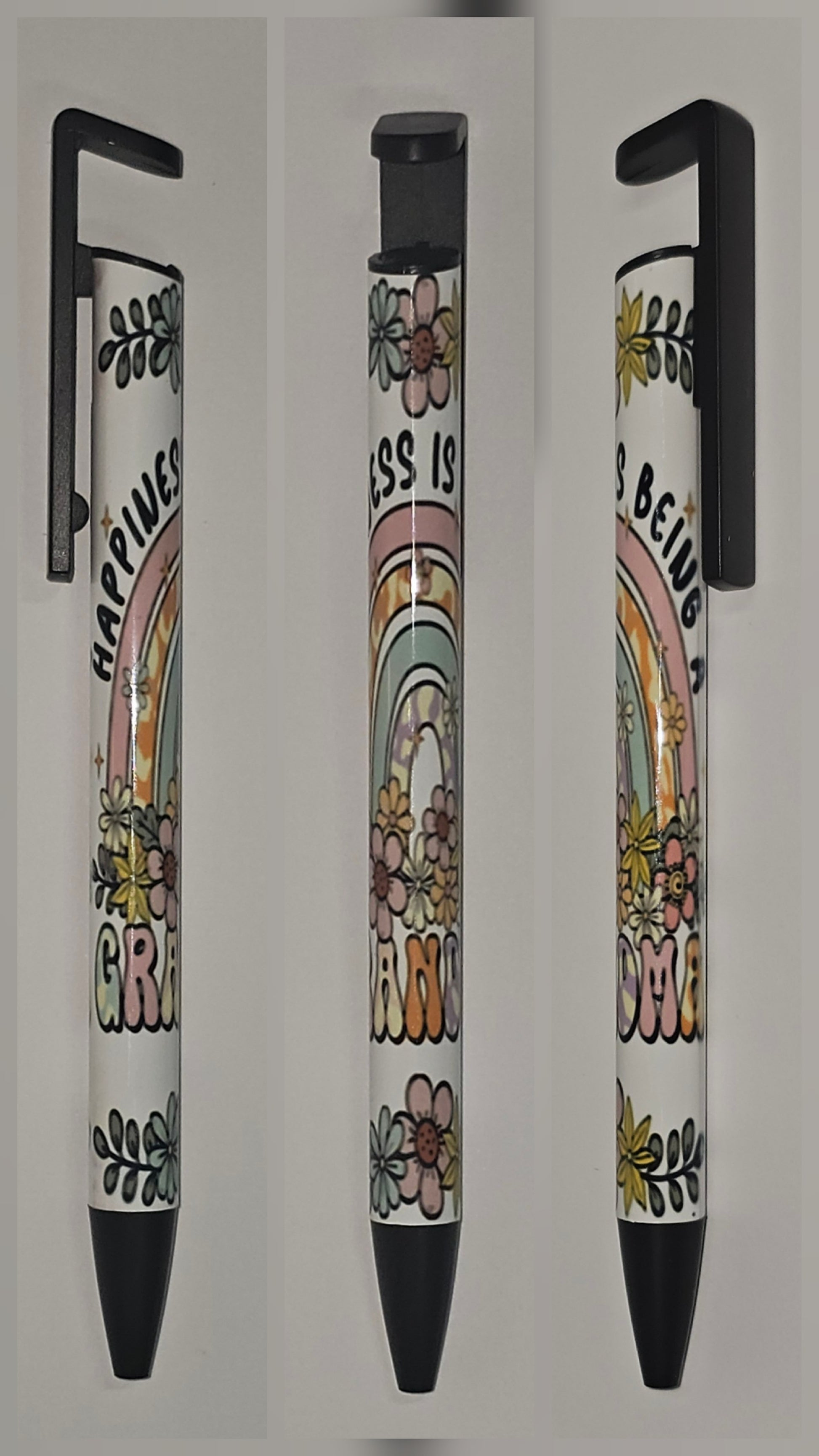 Experience true joy with "Happiness is being a Grandma", the perfect gift for your favorite grandmother. This beautiful and fun piece is sure to bring a smile to her face, reminding her of the precious bond between grandparent and grandchild. Embrace the happiness that comes from being a grandma with this special item! This amazing pen also doubles as a phone stand