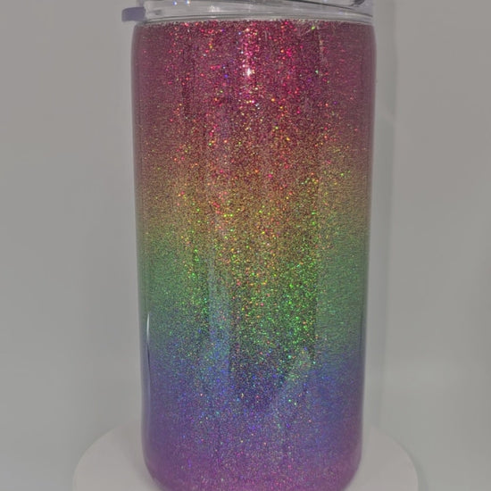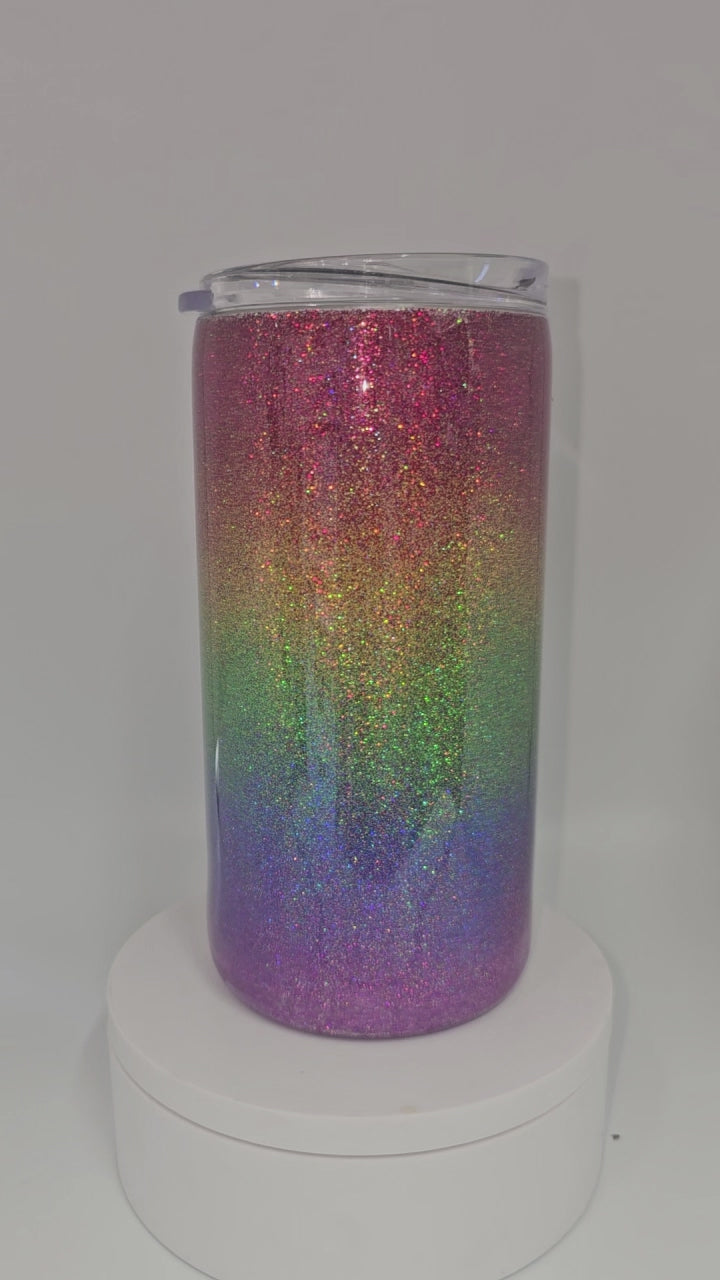 Experience the magic of the Holographic Rainbow Glitter Tumbler! Keep your drinks sparkling and cold for hours in this 15-ounce insulated stainless steel tumbler. With a beautiful rainbow glitter design, this tumbler is perfect for anyone who loves a bit of sparkle and color in their life. Cheers to always staying fabulous!