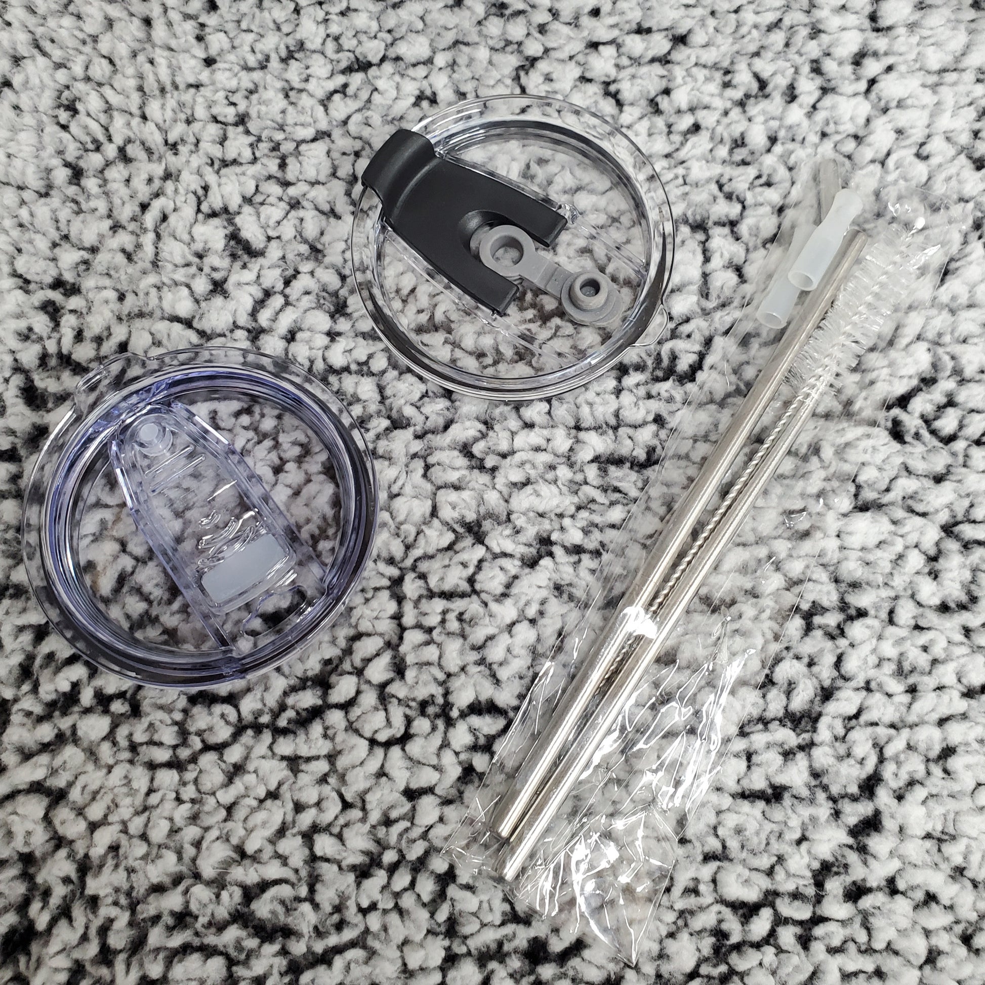 This mug comes complete with a straight stainless-steel straw and a curved stainless-steel straw as well as 2 styles of spill-resistant-lid that have a removable rubber gasket which prevent liquids from spilling.